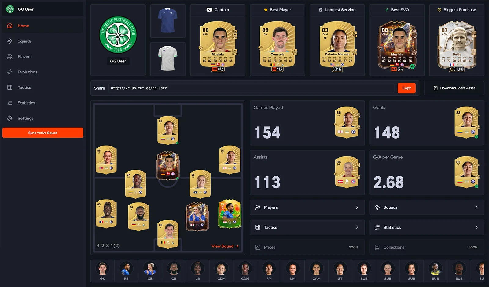 Link your EA account with FUT.GG to automatically sync all your squads. Immediately sync all your Evolutions, Players, Tactics, and Player Stats to FUT.GG and make your experience all the more seamless.